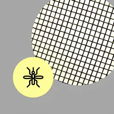 Размер ячейки 0,8×0,8 мм. Благодаря мелкому размеру ячеек защищает от проникновения в помещение мошки, гнуса, крупных частиц пыли, семян растений и деревьев. Так же защищает от пыли и тополиного пуха.